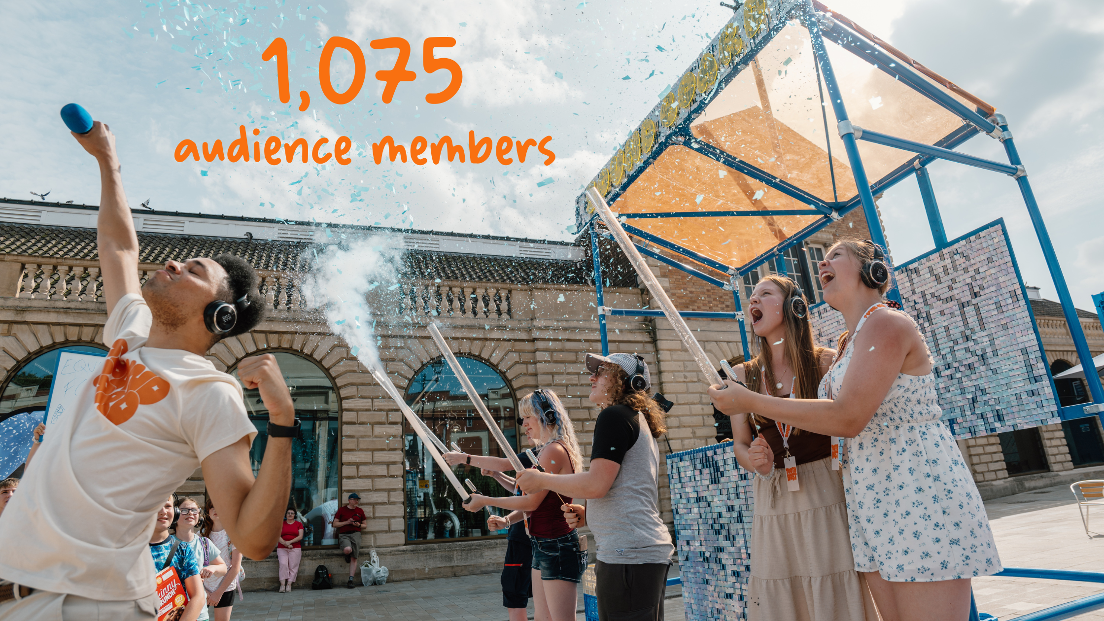 Sound Board is our outdoor, headphone-based show where the audience shapes the performance in real time. It offers young people a space to speak, listen and connect through playful honesty. This year the show travelled to festivals and public spaces across the country — including SIRF, SO Festival, bOing! and several Zone sites — with 26 performances reaching 1,075 people. Wherever it landed, Sound Board sparked conversations, built confidence and created moments of connection that felt fresh, personal and completely unique to each audience.